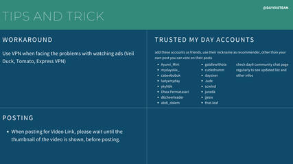 vote on post using all your daily hearts ONLY before 11 PM KSTvote on your own post or other trusted My Day posts (see the list on the picture above)vote before 11.30 PM KSTsave EH for Debut Anniversary